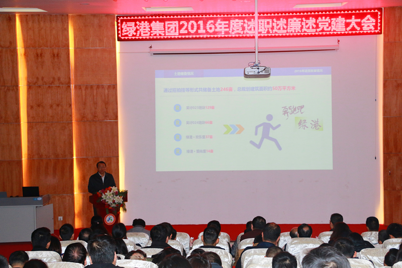 2017年1月14日,綠港集團(tuán)召開(kāi)2016年度述職述廉述黨建工作會(huì)議,集團(tuán)全體領(lǐng)導(dǎo)班子、集團(tuán)總部全體員工及子公司中層干部、職工代表共150余人參加了大會(huì),經(jīng)開(kāi)區(qū)紀(jì)工委派駐國(guó)有公司紀(jì)檢組組長(zhǎng)李云岳,黨群工作局組織科科長(zhǎng)向國(guó)澤出席會(huì)議。